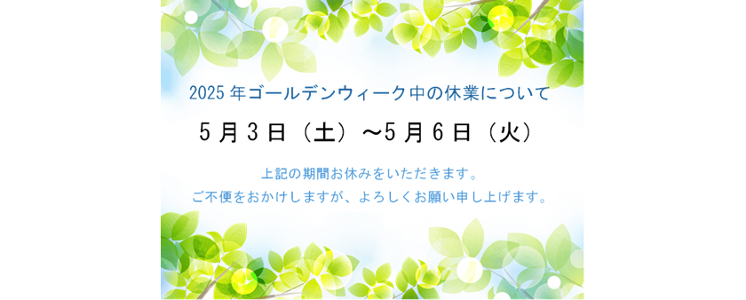 2025年ゴールデンウィーク中の休業について